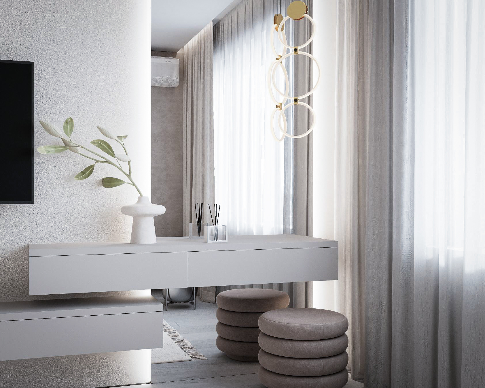 В ОСНОВЕ КОНЦЕПЦИИ — СВЕТЛЫЕ СЕРО-БЕЖЕВЫЕ ОТТЕНКИ, КОТОРЫЕ СОЗДАЮТ АТМОСФЕРУ ЛЕГКОСТИ, УЮТА И ГАРМОНИИ. ПРОСТОРНЫЕ, СВЕТЛЫЕ КОМНАТЫ НАПОЛНЯЮТСЯ ЕСТЕСТВЕННЫМ СВЕТОМ, ПОДЧЕРКИВАЯ СВЕЖЕСТЬ И СОВРЕМЕННОСТЬ ПРОСТРАНСТВА.